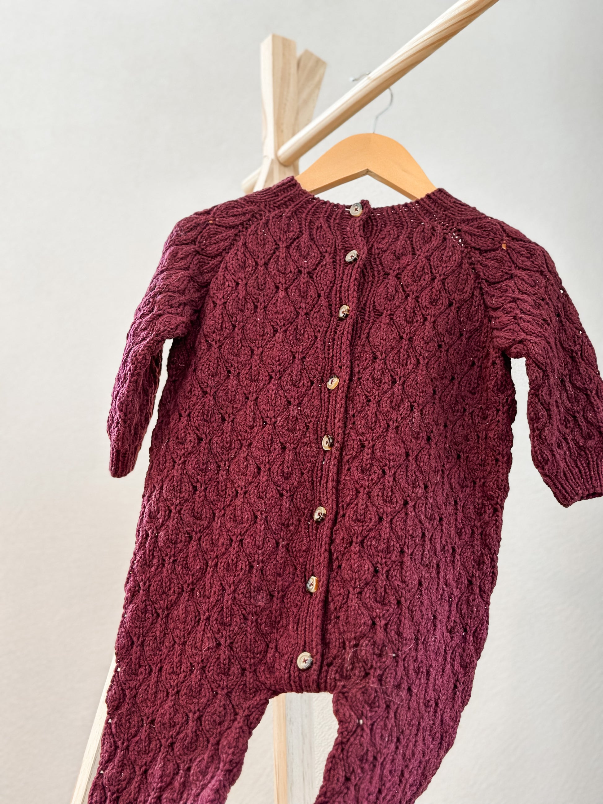 Mit diesem exquisiten Jumpsuit in Bordeaux kommen Sie elegant durch die kühleren Tage. Dieser bezaubernde Einteiler ist aus nachhaltiger, Öko-Tex-zertifizierter und museling-freier Merinowolle gefertigt und mit einem charmanten Blattmotiv versehen. Halten Sie Ihr Kind warm und kuschelig, ohne Kompromisse beim Stil einzugehen.