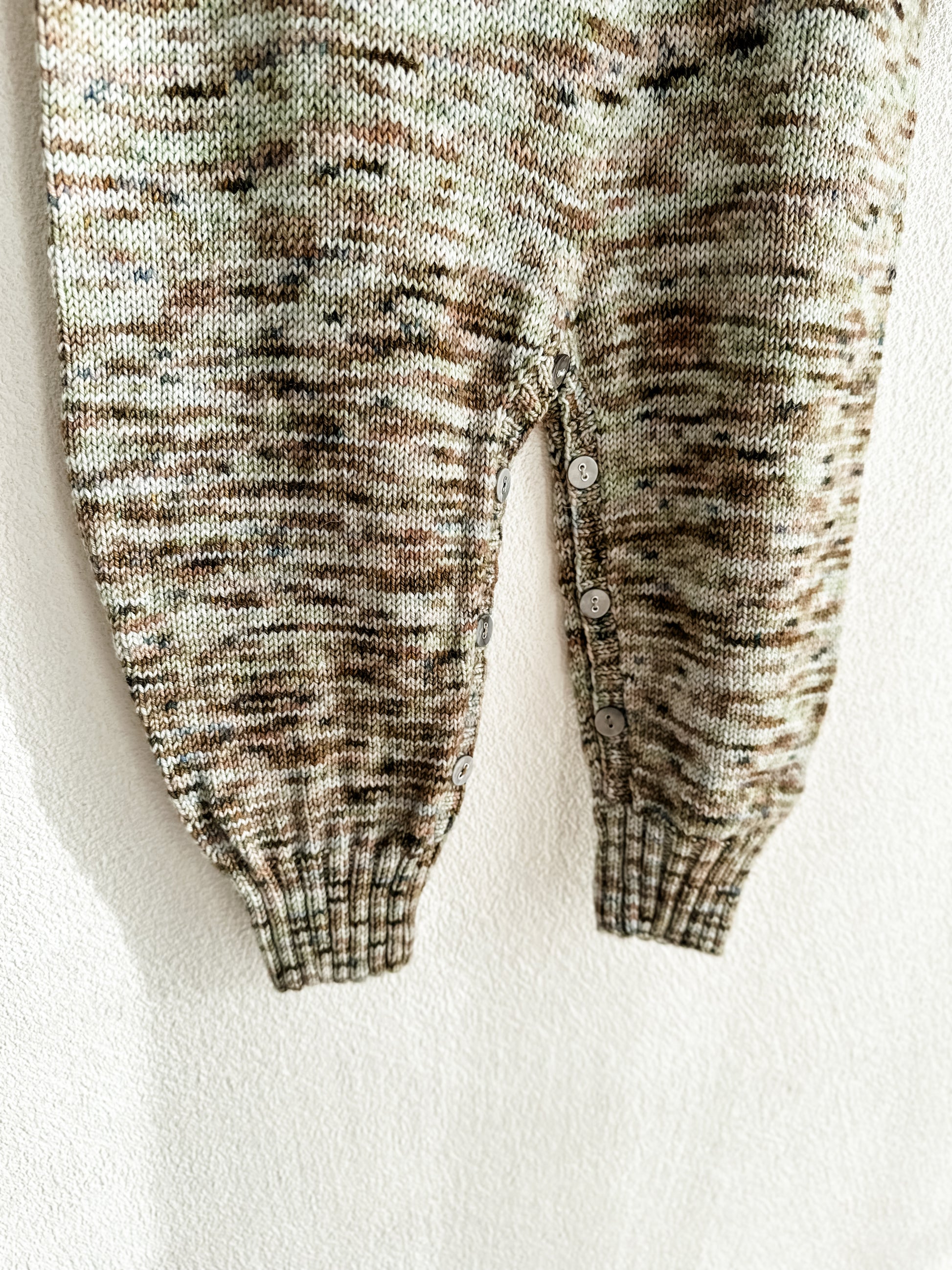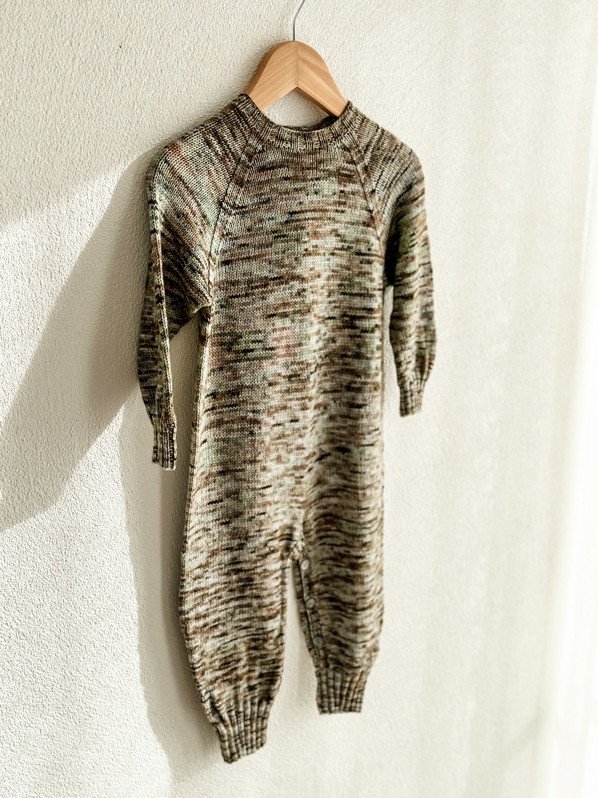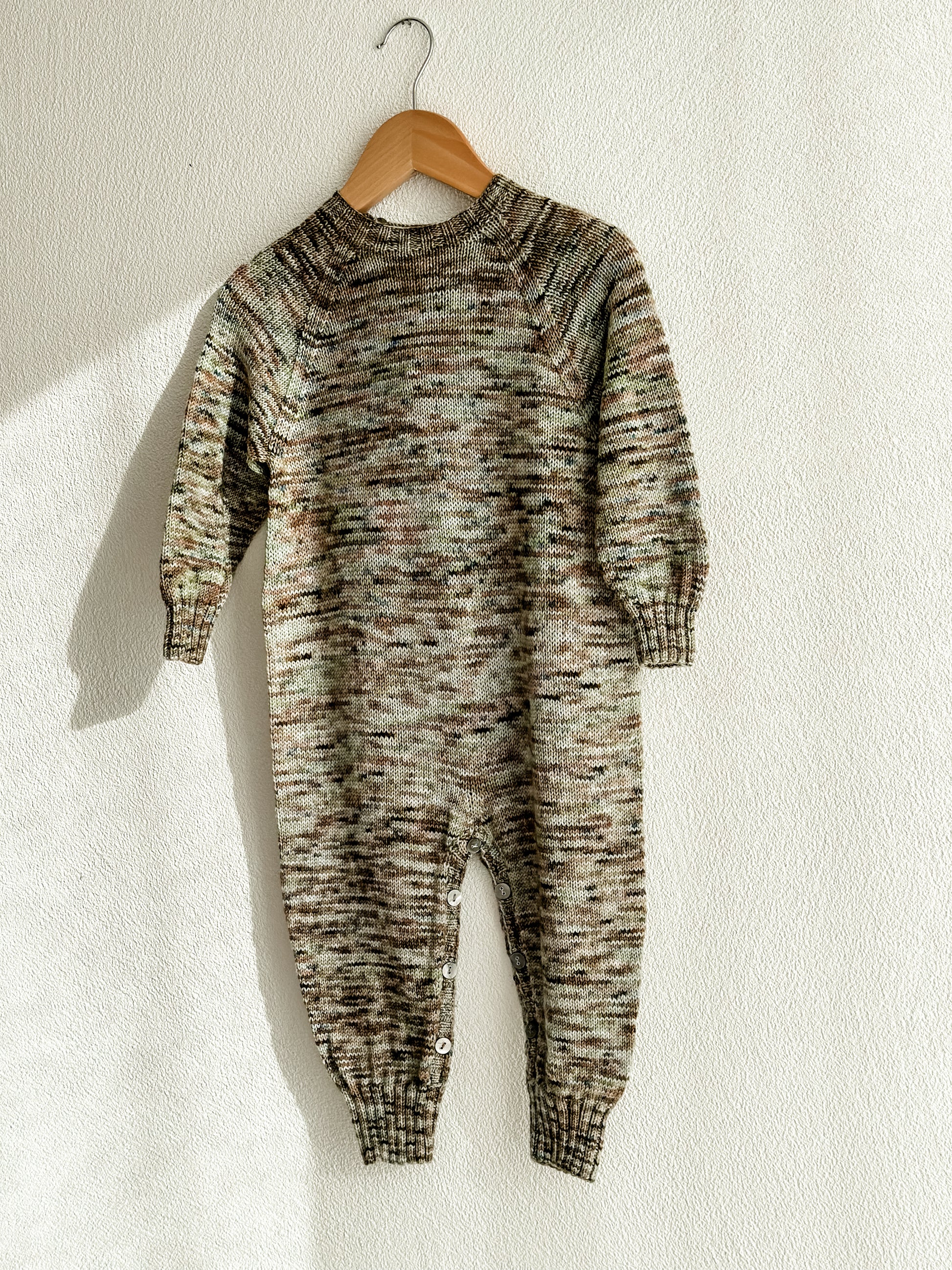 Dieser Overall aus handgefärbter Wolle besticht durch seinen schönen Farbverlauf in grün und braun. Das angenehme Tragegefühl wird durch den Polyamid Anteil verstärkt, der ausserdem für Robustheit und Langlebigkeit sorgt, auch bei hoher Beanspruchung. Danke der langärmligen Ausführung perfekt für den Übergang oder die kalte Jahreszeit.