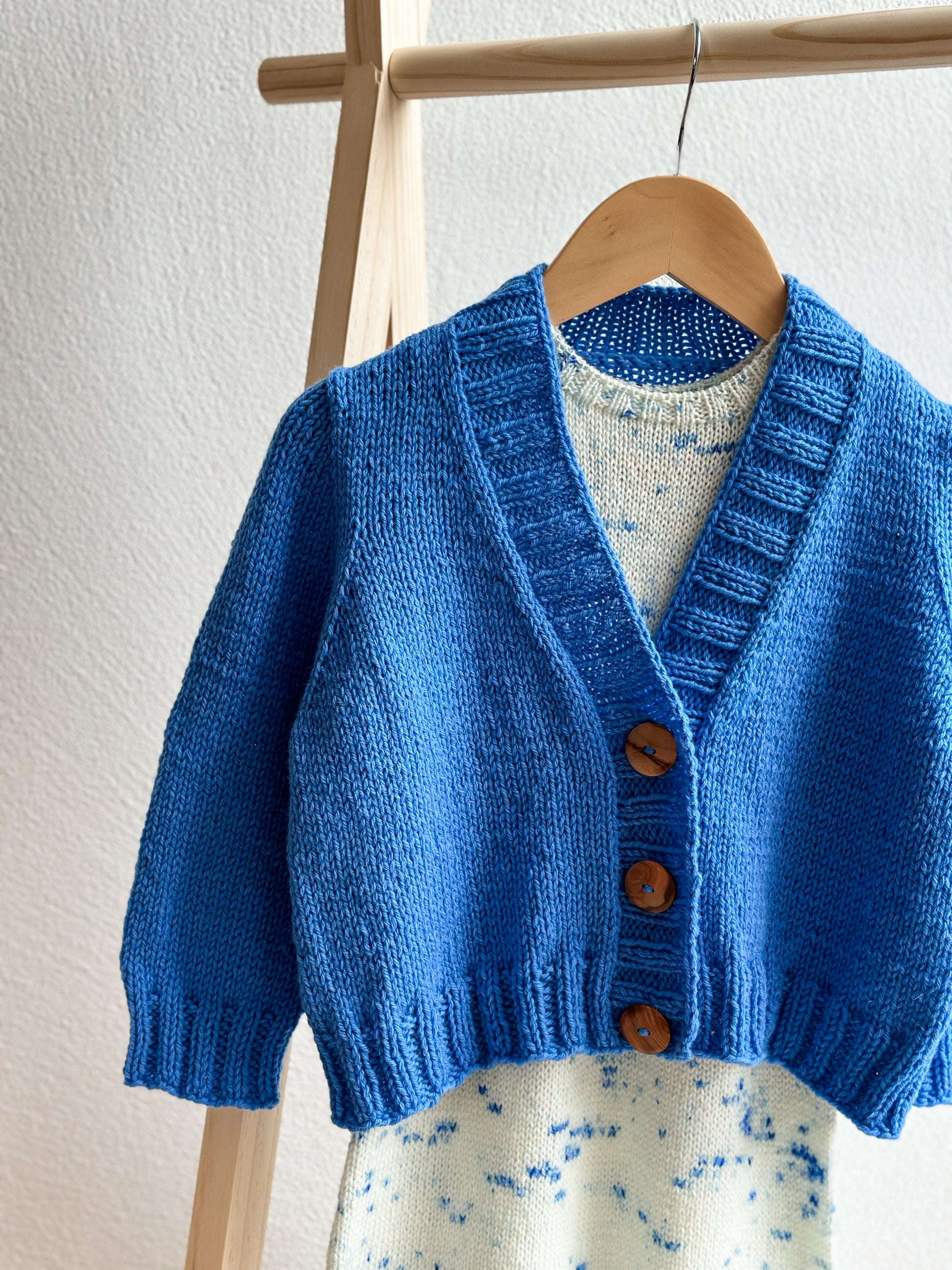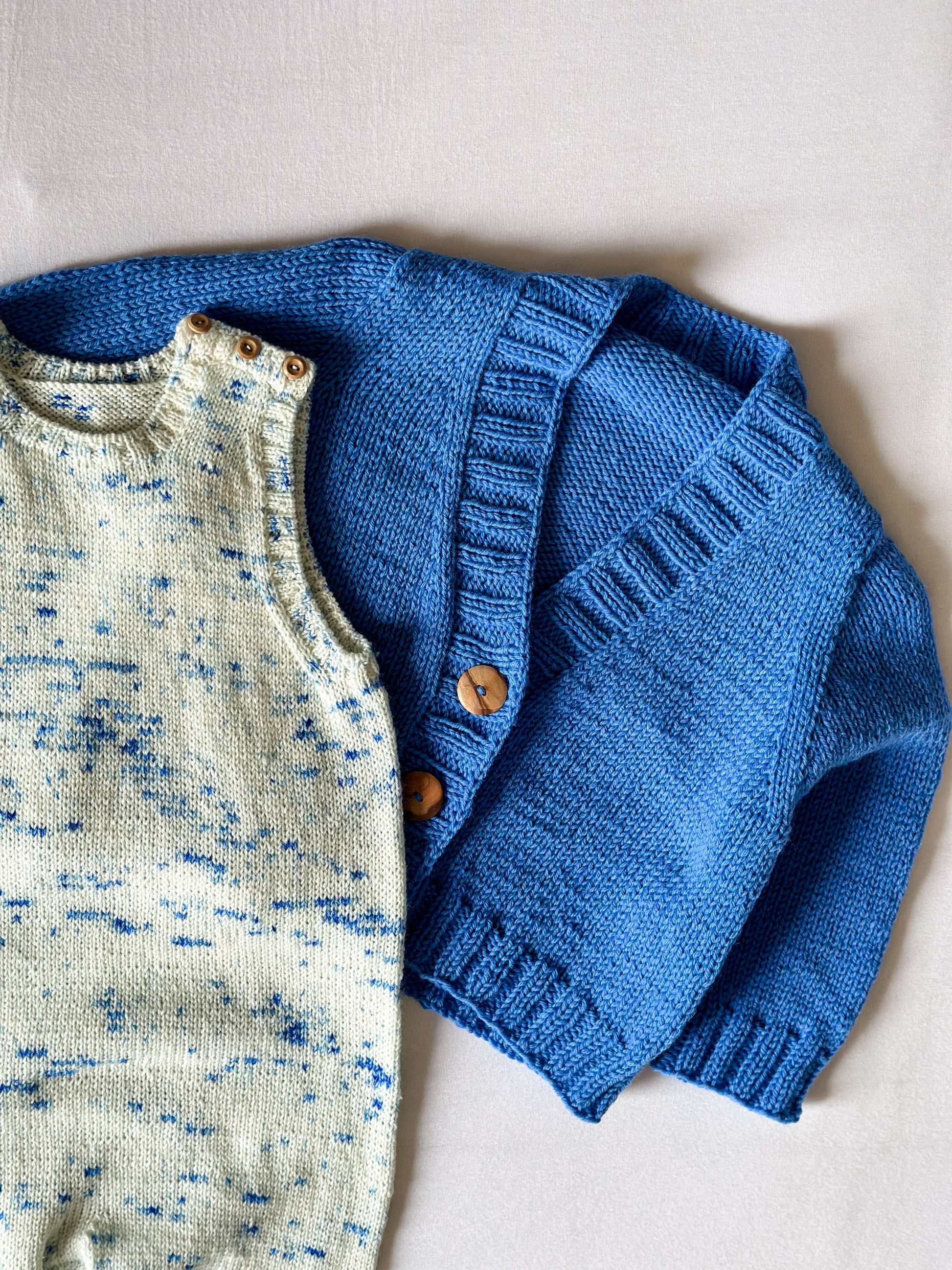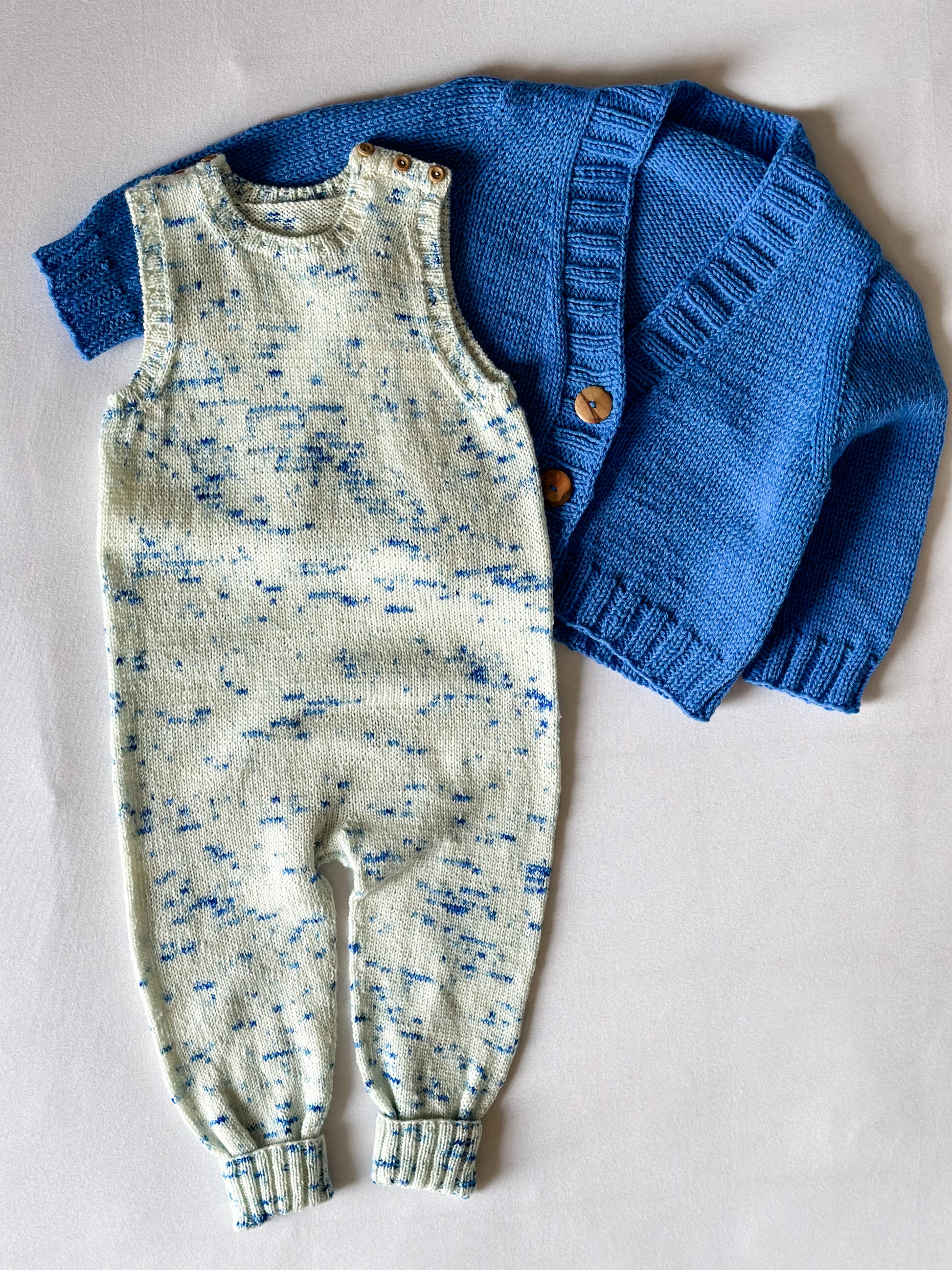 Das handgestrickte Set aus Overall und Jacke "Porcelain" begeistert mit kontrastreichen Farben und einem angenehmen Tragegefühl dank der Merino/Kaschmir Mischung. Die kräftige Jacke in Mohnblau und der zurückhaltende Strampler bieten den perfekten Mix aus Stil und Bequemlichkeit. Ein Must-Have für jeden modebewusste und komfortliebende Kindergarderobe!