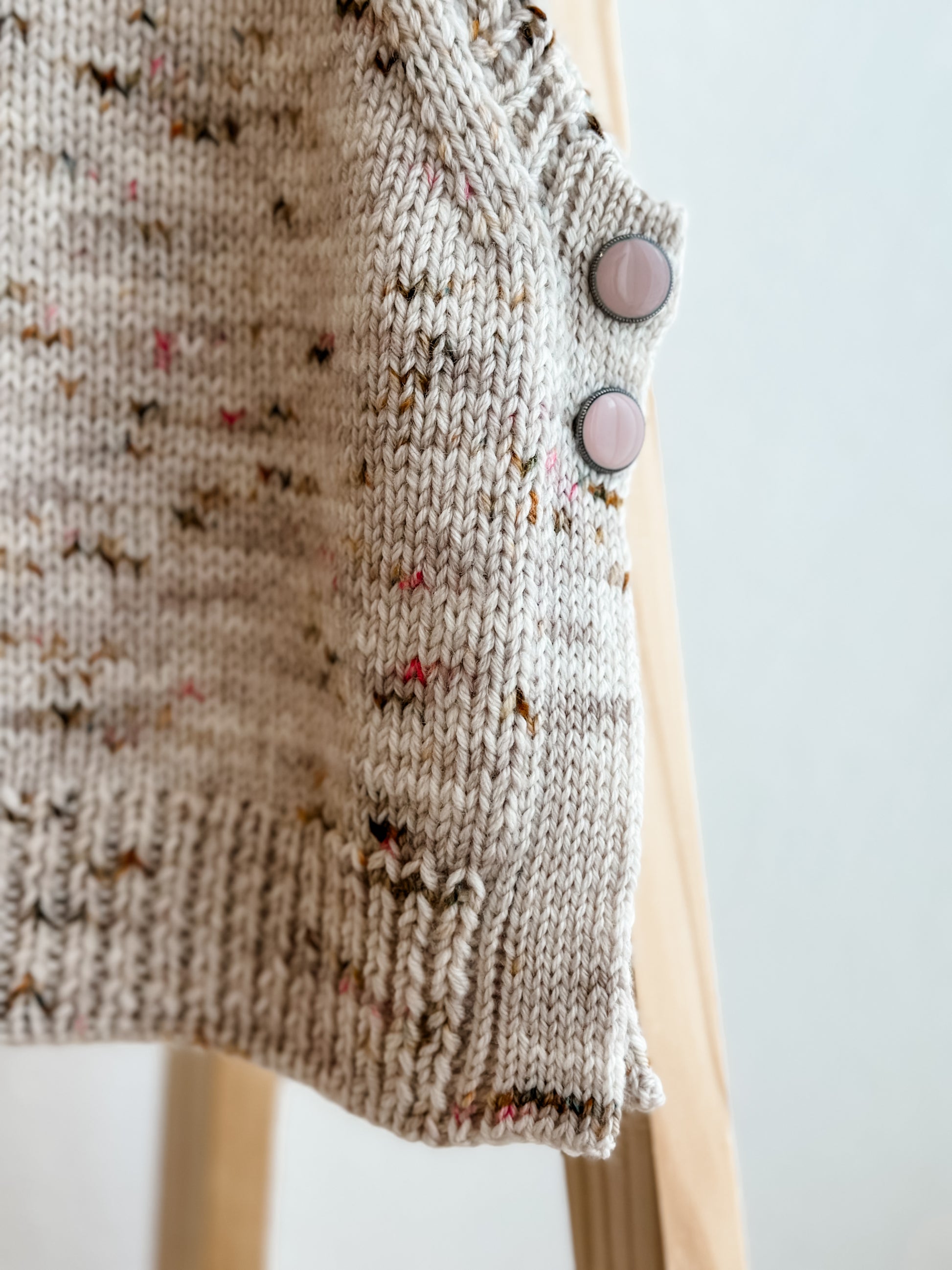 Erleben Sie komfortablen Luxus mit dem Slipover Raspberry Swirl. Hergestellt aus handgefärbter Wolle, bietet er eine wunderbar wärmende Schicht über einem Pulli oder einer Bluse getragen. Perfekt für die Übergangszeit, kann er sowohl leger als auch edel getragen werden. Das Design wird durch edle Metallknöpfe abgerundet.